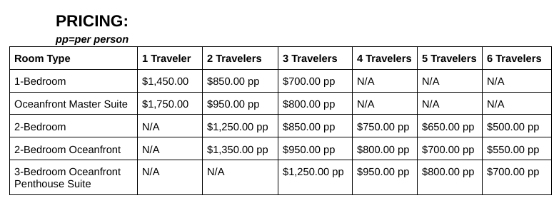 – Flights ($TBD) you can estimate these on Google flights with airport code BZE for Belize