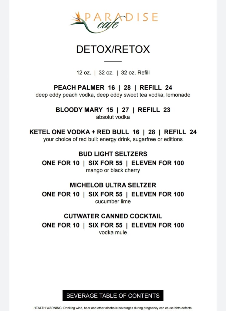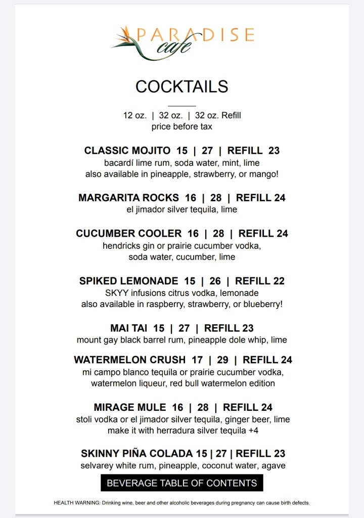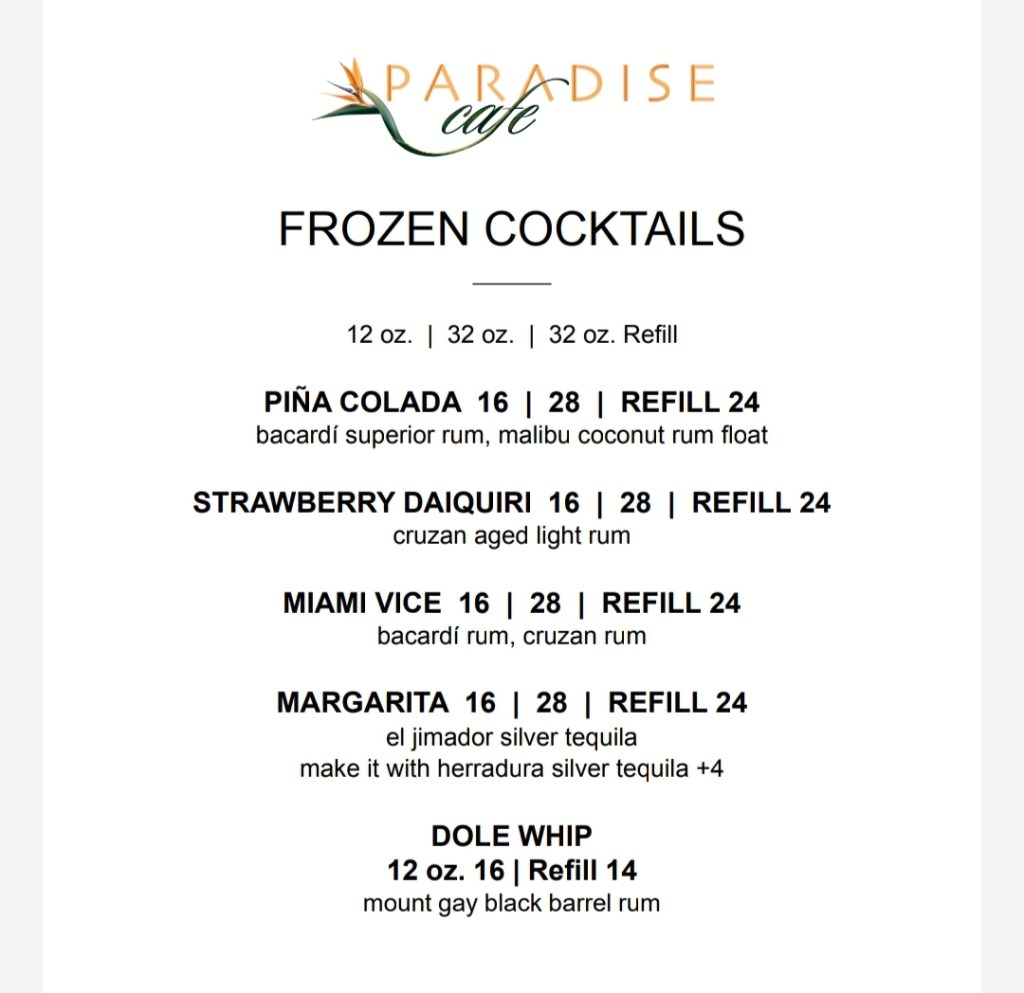 •Brunch/Lunch @ Paradise Cafe or Overlook Grill (food/drinks not included but can be purchased at venue)