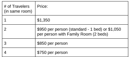 If you have more than 4 Travelers, you will have to break up into multiple rooms (requests can be made for rooms to be placed next to each other)