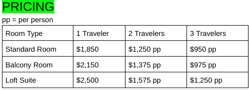 Please email us at DeeLuxeVacations@gmail.com or Call us at 314-566-5888