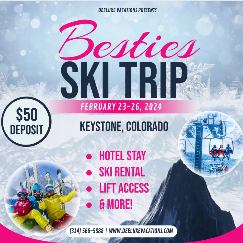 Join the #BestiesSquad on our first-ever Ski Trip! You don’t have to be a pro to Ski so come try it out with your Besties! If you decide you don’t want to Ski, enjoy the views and trade your Ski session out for a Besties Bar Night or Family Dinner.