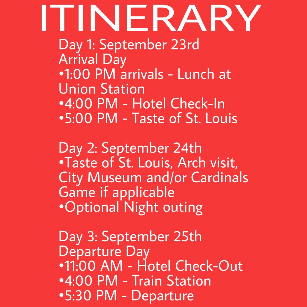 BESTIES! COME SEE ST. LOUIS THIS YEAR! The Taste of St. Louis is happening in September and I thought this would be the perfect time to bring out the besties! St. Louis knows how to party and we’d love for you to experience it with us! This package is originally from Chicago but you can also depart from Milwaukee, Memphis, Indianapolis or Kansas City. Your package includes train tickets (amtrak), 2 night hotel stay, Taste of St. Louis (free entry) + itinerary