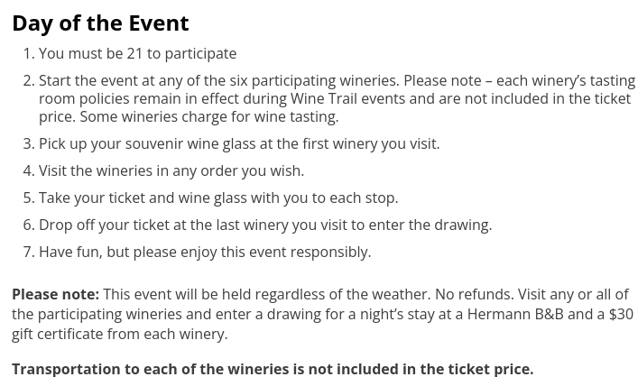 – Hermann Trolley Transportation +$28.00 per person
