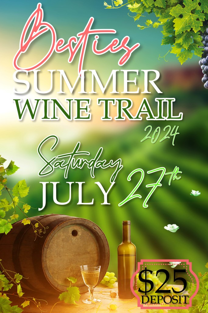 – TWO DAY Wine Trail tickets with wine & food pairings at 6 different wineries (you can come back on Sunday, May 28th if you did not get to complete all of your winery visits, no transport 2nd day)
