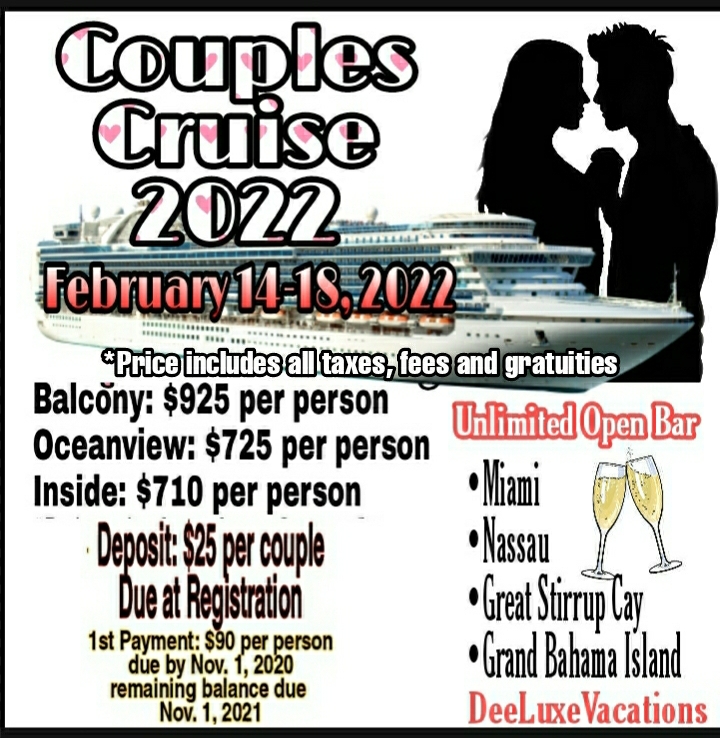 This 4-Day Bahamas Couples Cruise will sail on Valentine’s Day 2022 from Miami, Florida. There will be 3 stops including Nassau, Norwegians private Island Great Stirrup Cay, and Grand Bahama Island. There will be plenty of adventures to explore during your time there, or simply relax on the beach.