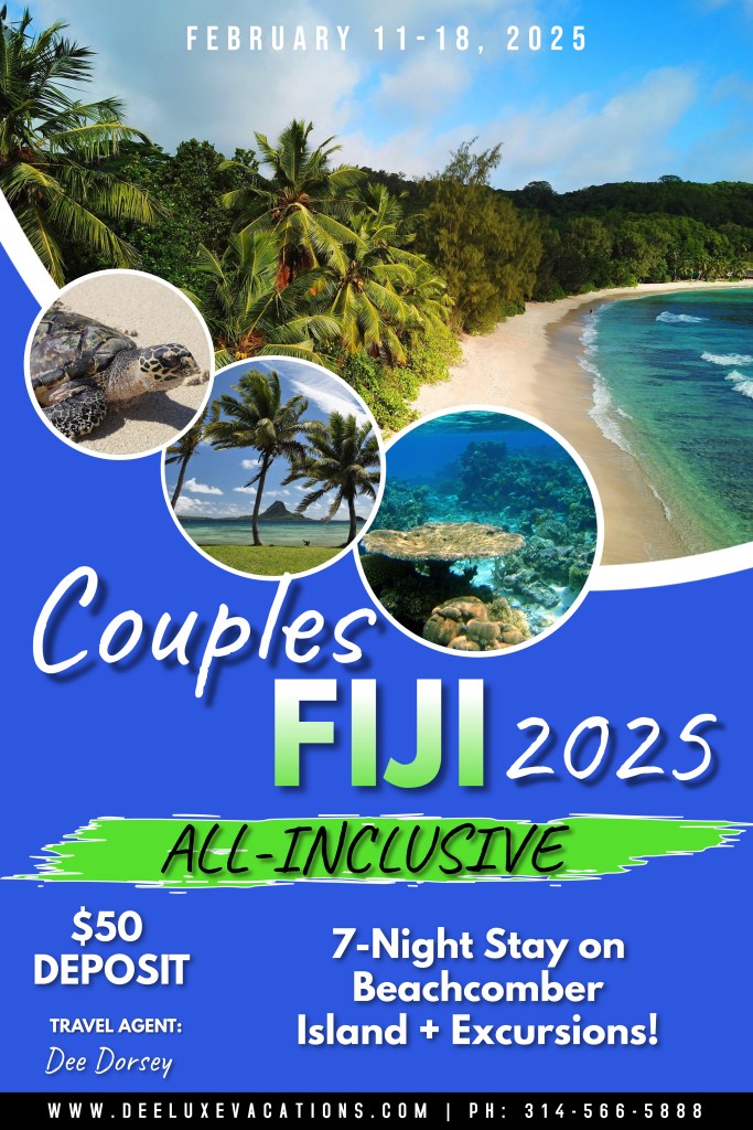 Join us on the islands of Fiji in 2025 for our annual Couples Trip! We will be on Beachcomber Island at our All-Inclusive Beachfront Resort. The itinerary is optional but we’d love for you to join us.