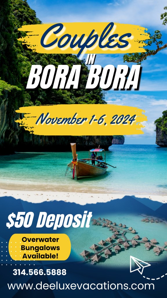 Join us in Bora Bora for the ultimate Couples Trip! Have you been dreaming of staying in a Overwater Bungalow? Now you can!!