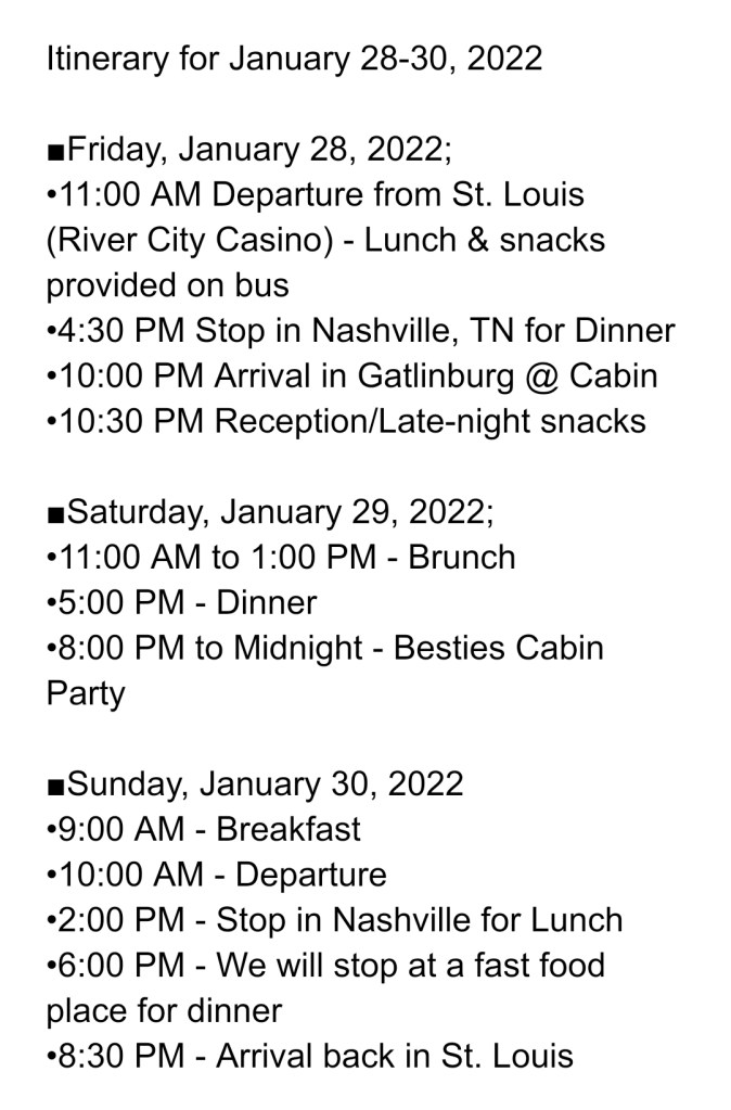 $50 Deposit for Besties Smoky Mountains Trip January 28-30, 2022