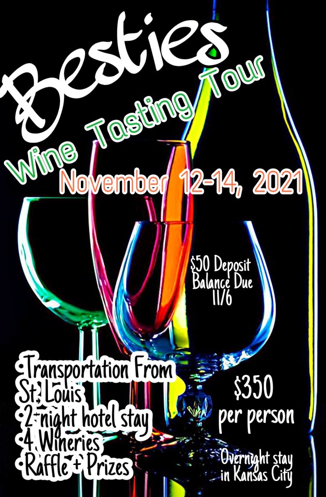 We will be visiting 4 wineries and Kansas City! Date is November 12-14, 2021.