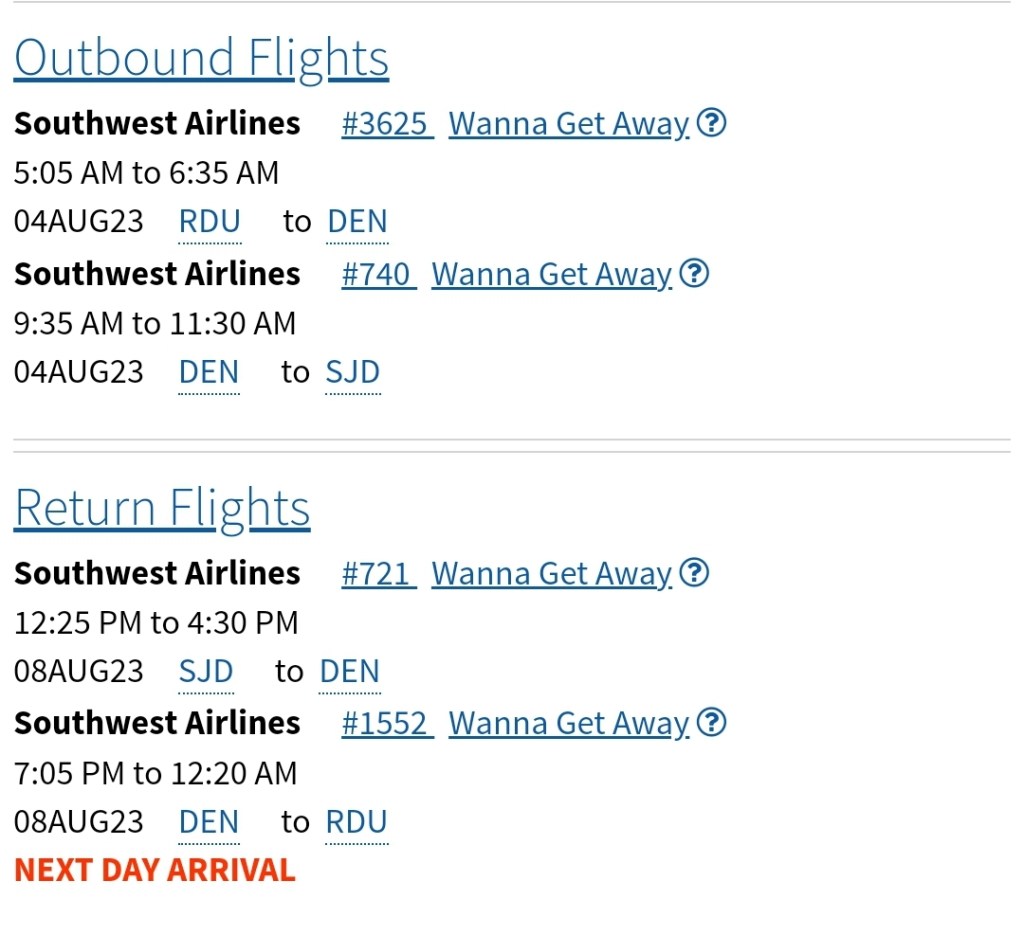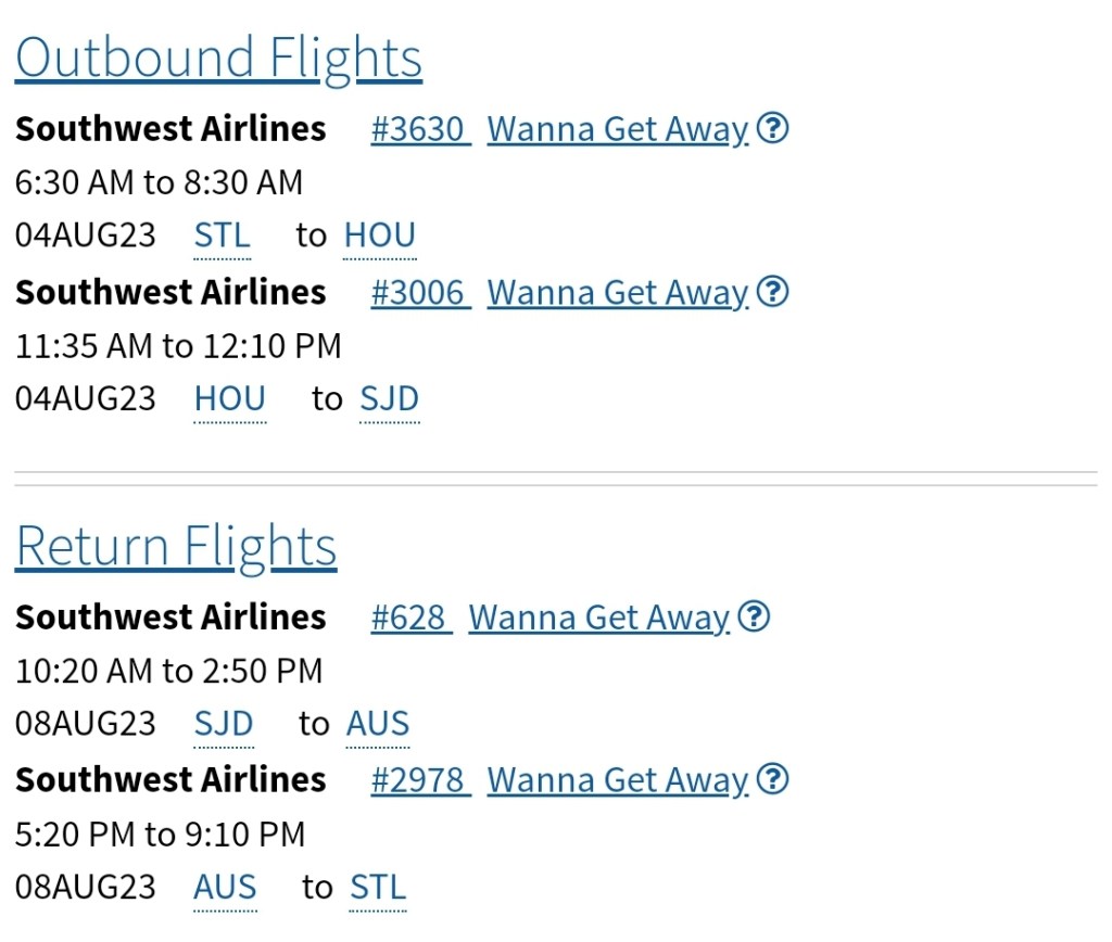 *based on single occupancy, all flights through Southwest Airlines unless otherwise specified: