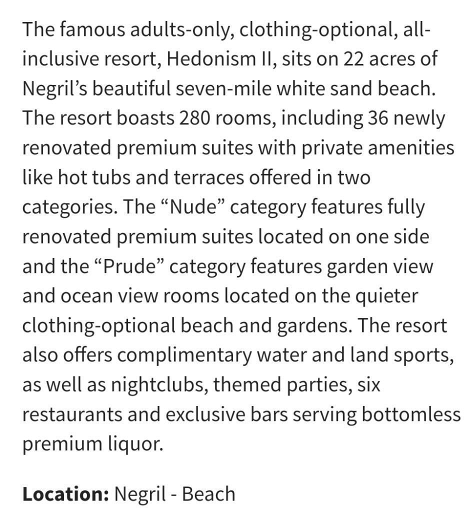 Oceanview Nude Section: $1,377.93 per person