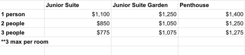 + Travelers Table with 5 course Dinner & Drinks +$175.00 per person