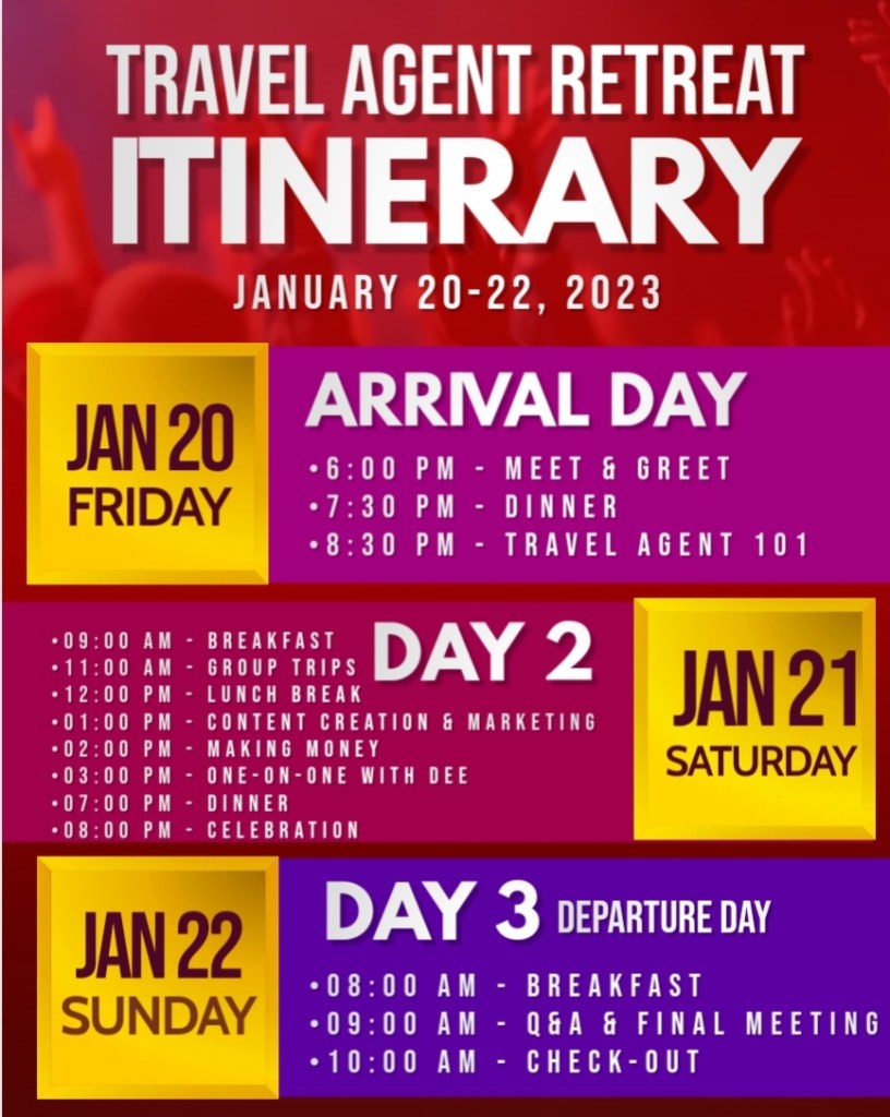 Already a Travel Agent looking to expand or Interested in becoming one? Join our next Retreat! 2-night stay + meals are included!